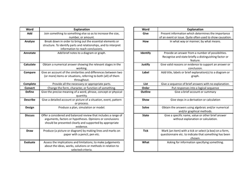 Exam command words display Computer Science AQA GCSE | Teaching Resources