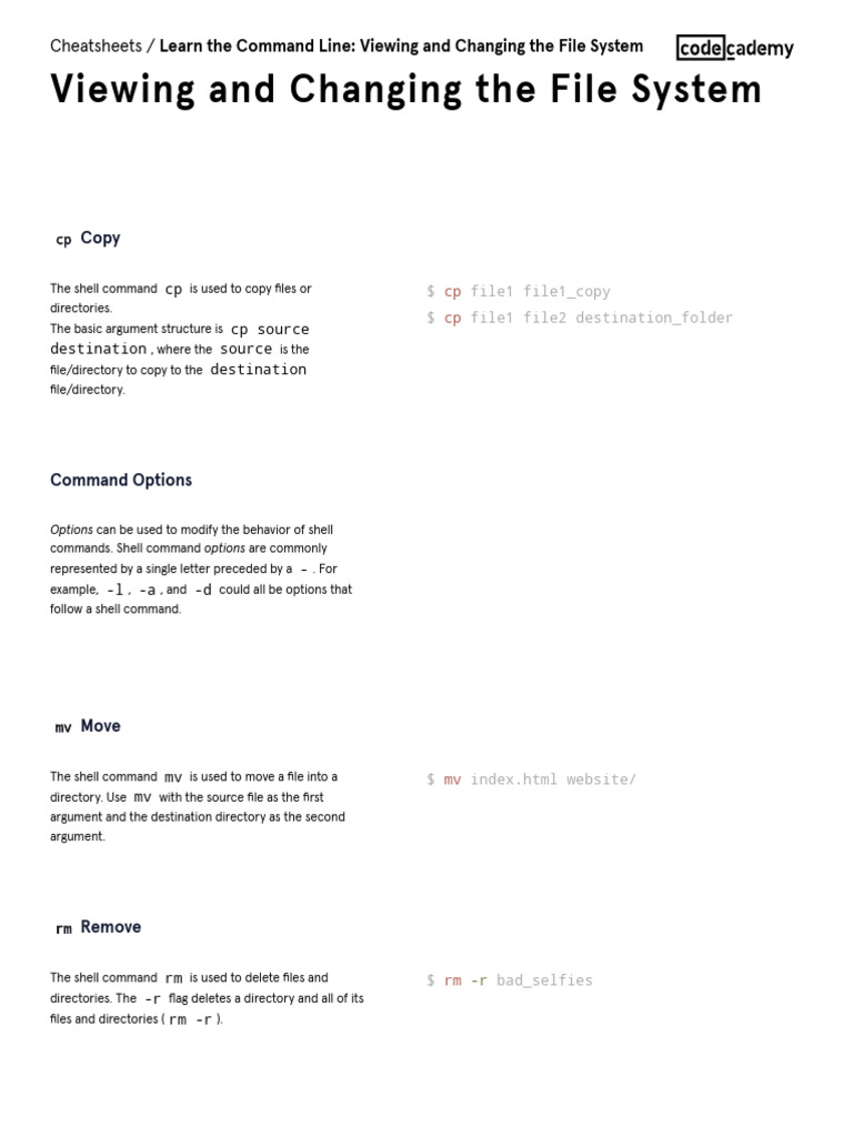 Viewing and Changing the File System Cheatsheet Codecademy - The shell ...