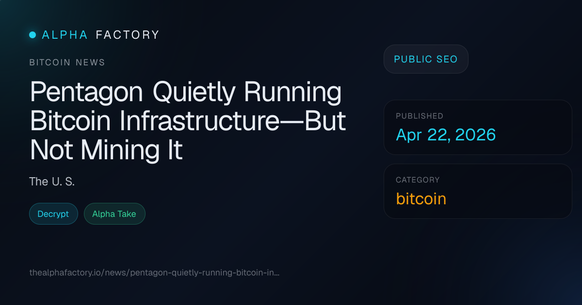 Pentagon Quietly Running Bitcoin Infrastructure—But Not Mining It ...