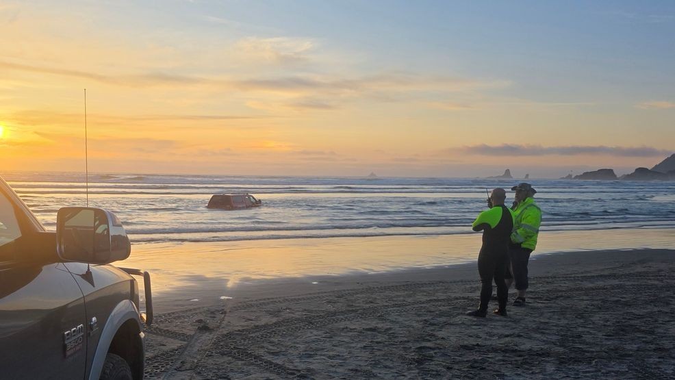 Cannon Beach fire command truck stuck crossing Ecola Creek during ...