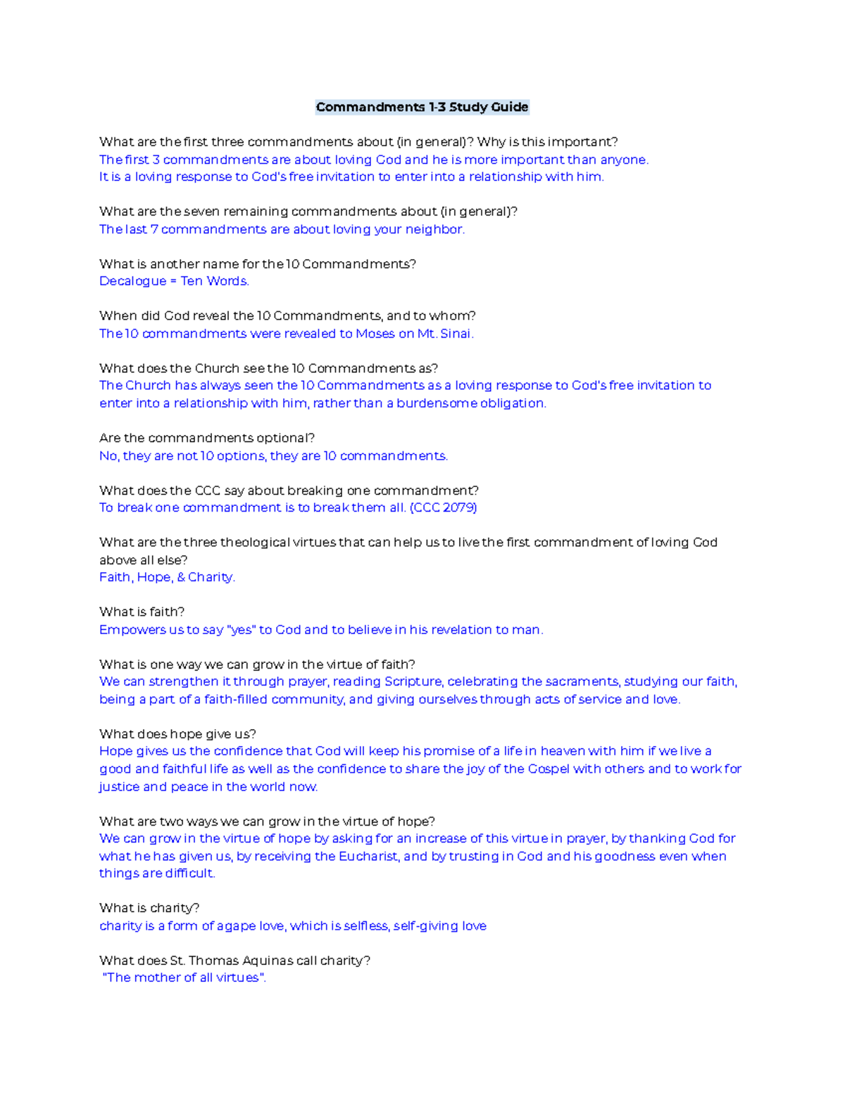Commandments 1-3 Study Guide - It is a loving response to God’s free ...