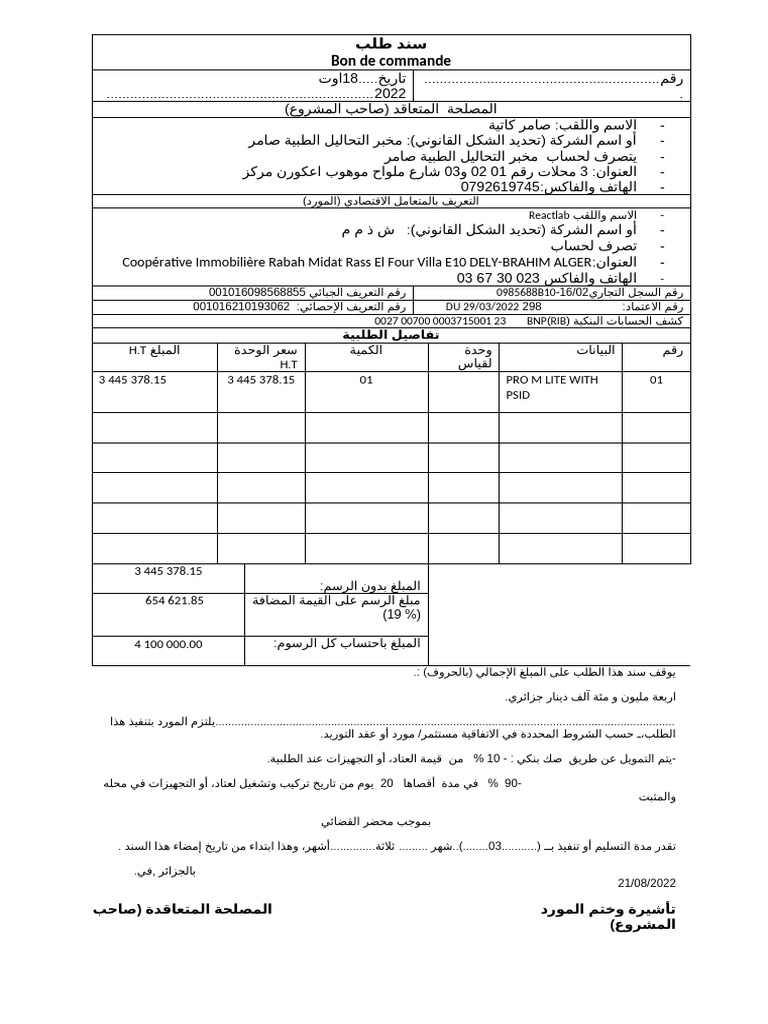 Bon de Commende Samer Katia | PDF