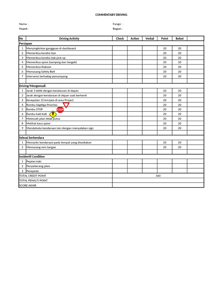 Checklist Defensive & Commentary Driving - Penilaian Rev.2 | PDF