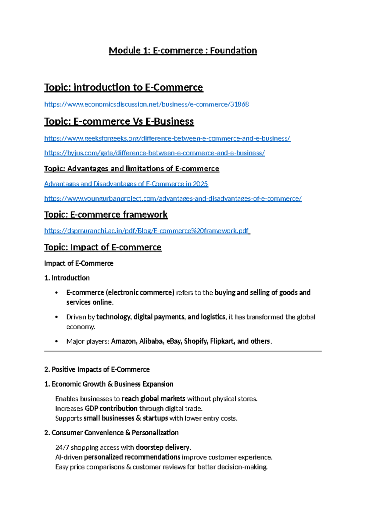 Module 1: E-Commerce Overview - Advantages, Limitations, and Future ...