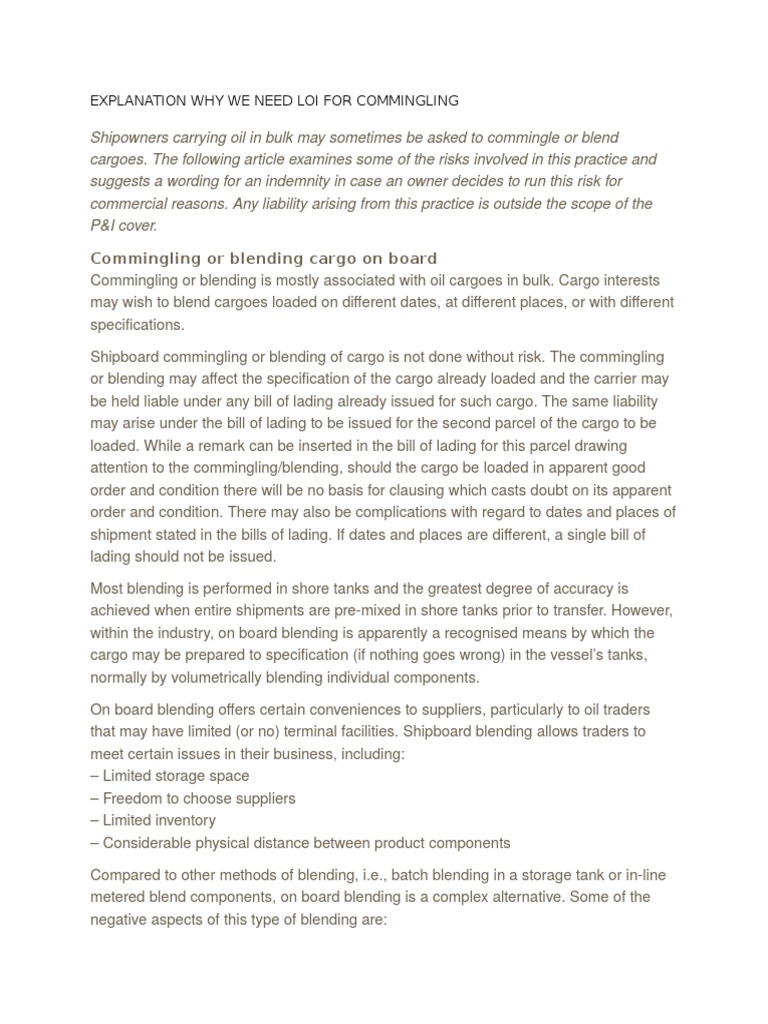 Explanation Why We Need Loi For Commingling | PDF | Bill Of Lading | Cargo