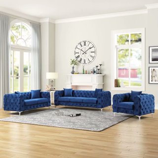 Commix Soft Fiber Filled Overstuffed 8 Piece Sectional Sofa Set Blue ...