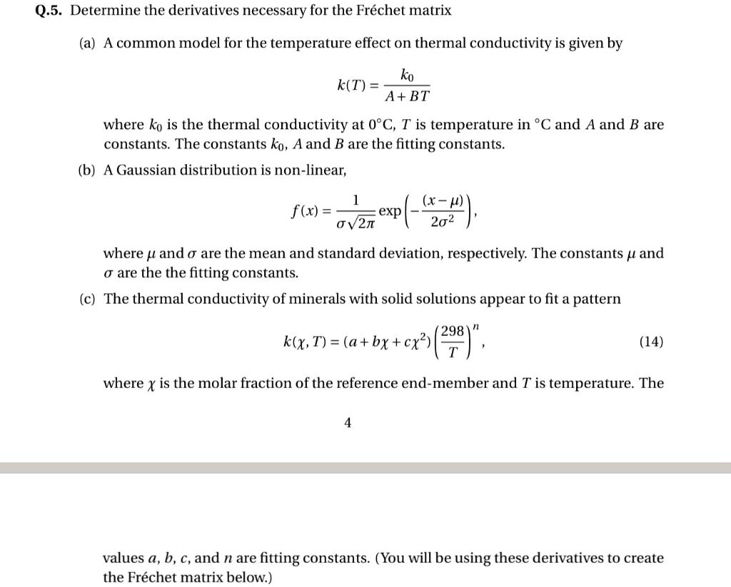 Q.5. Determine the derivatives necessary for the Fréchet matrix (a) A ...