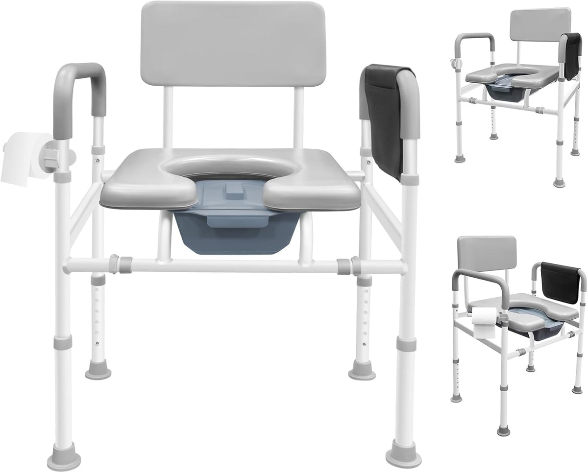 Bedside Commode Chair with Padded Seat & Backrest – Adjustable Height ...