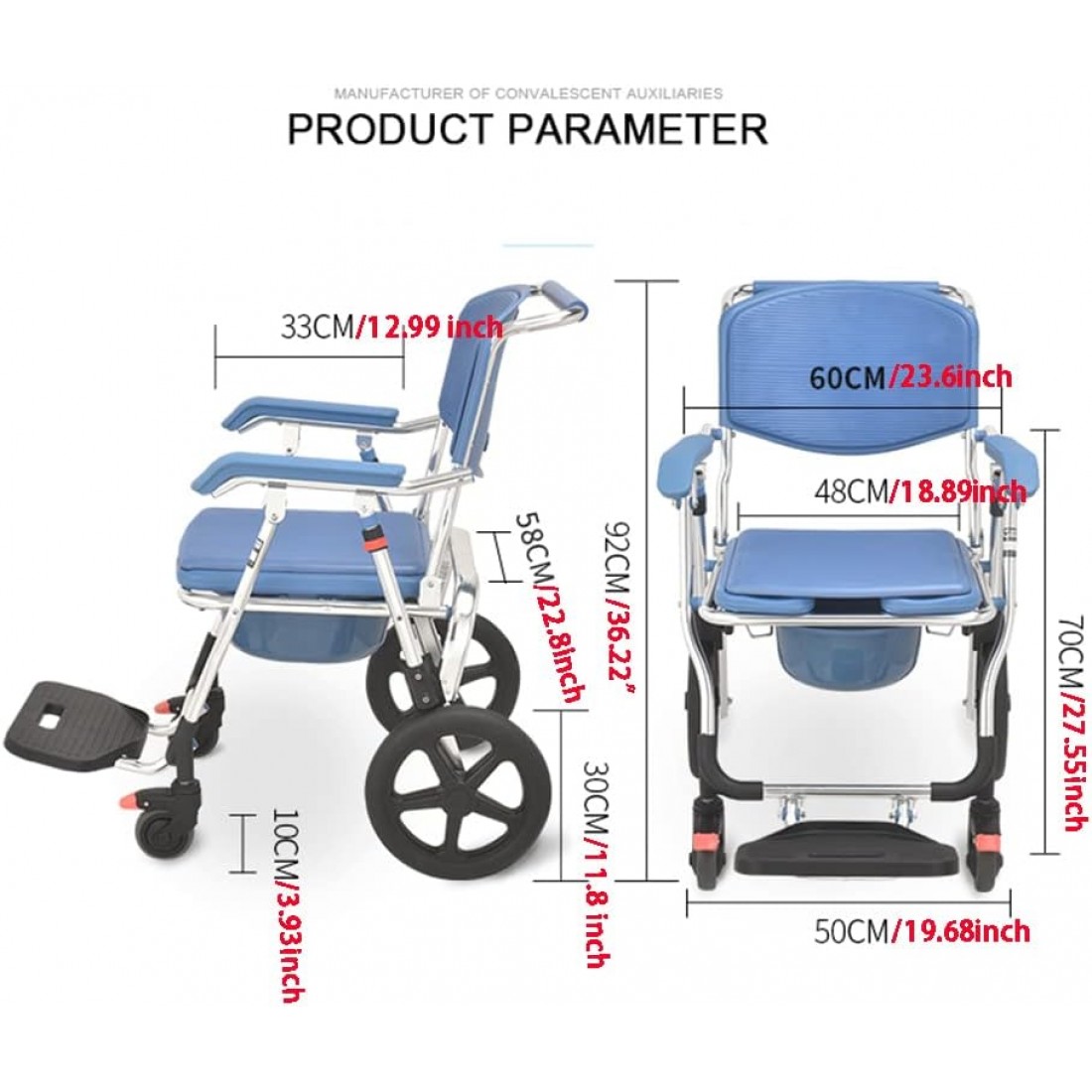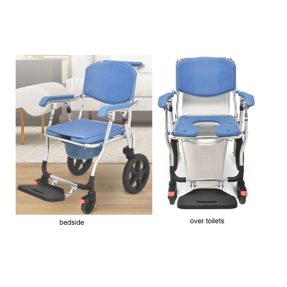 Aluminum Commode with Wheels, Fold Up Footrest, Padded Seat & Backrest ...