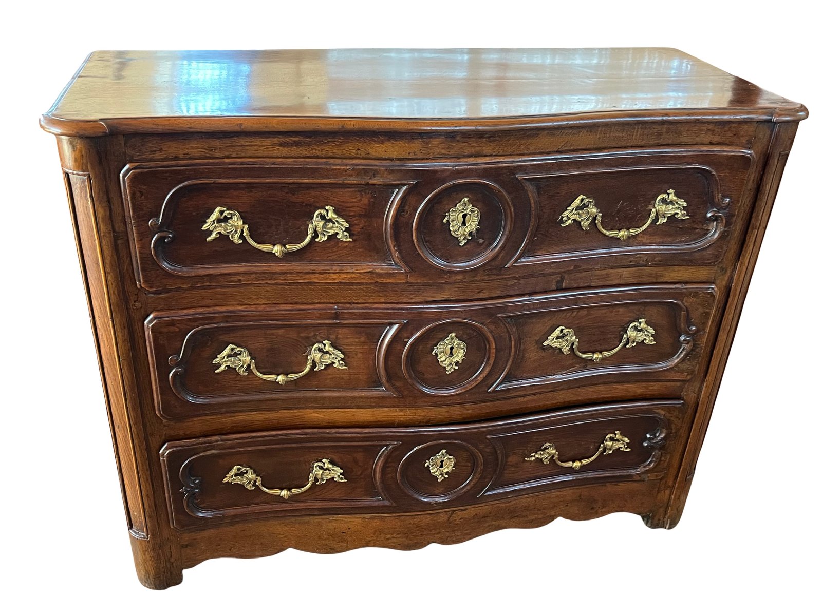 French Provincial Polychromed Oak Commode, 19th c., the canted corner ...