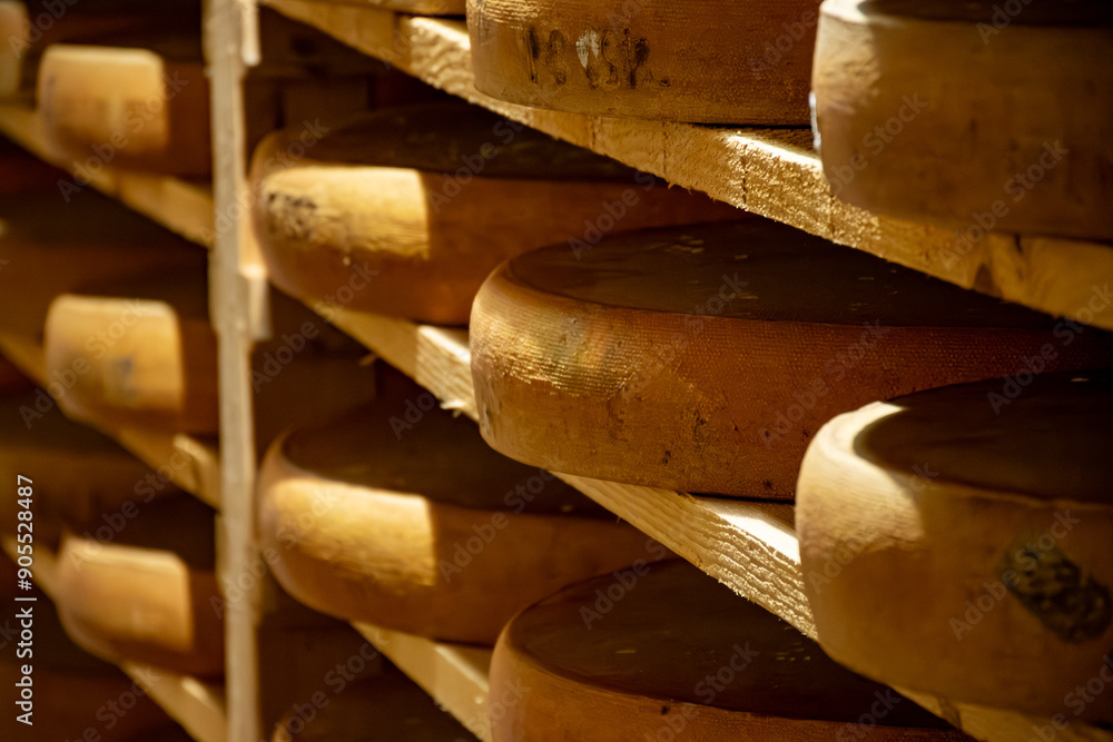 Aging rooms with shelves in cheese caves, central location for aging of ...