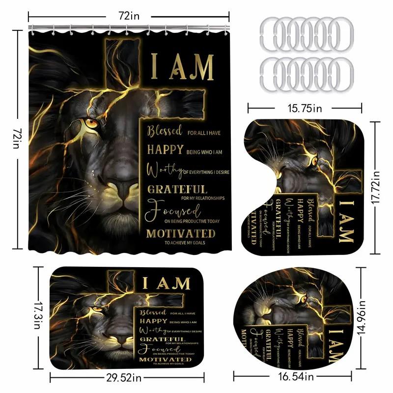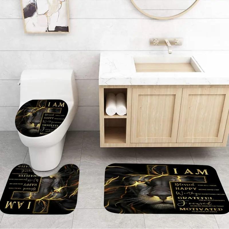 1pc/4pcs cross and lion shower curtain set, non-slip floor mat, U ...