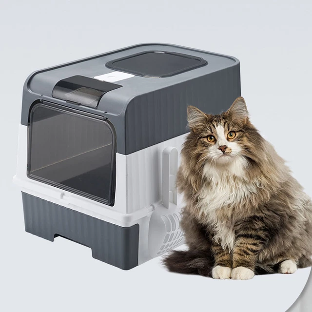 LARGE CAT LITTER Box Pet Toilet Skylight Enclosed Drawer Scoop Covered ...