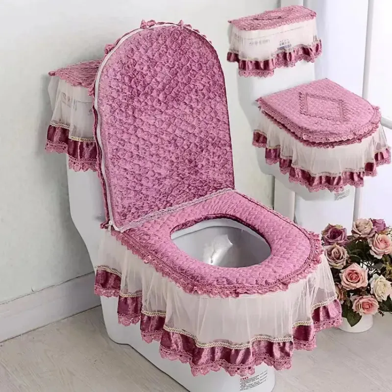 3Pc Warm Tank Lid Top Cover Set Lace Cloth Closestool Winter Toilet ...