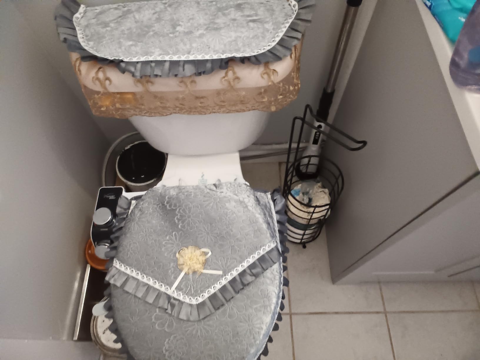 European Lace Toilet Cover Set with Zipper, 3-Piece Bathroom Tank and ...