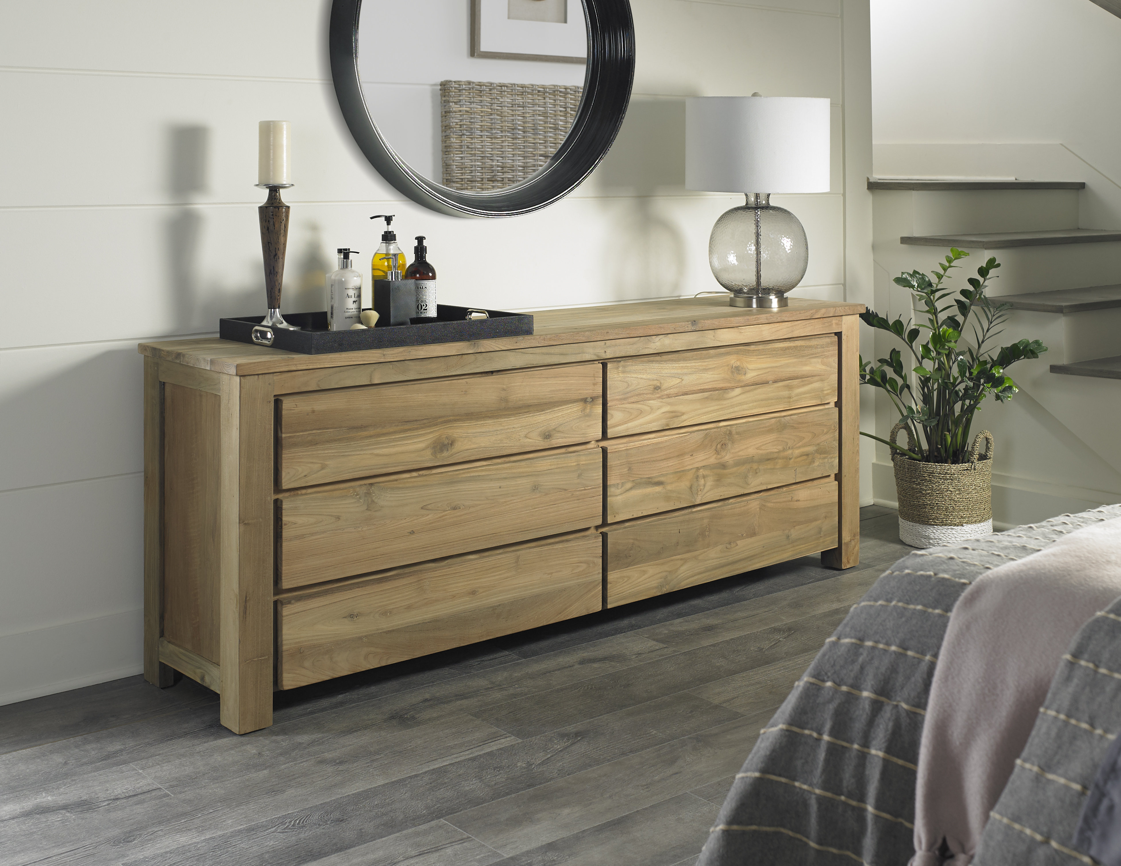Commode double avec 6 tiroirs en acacia massif | Leroy Merlin