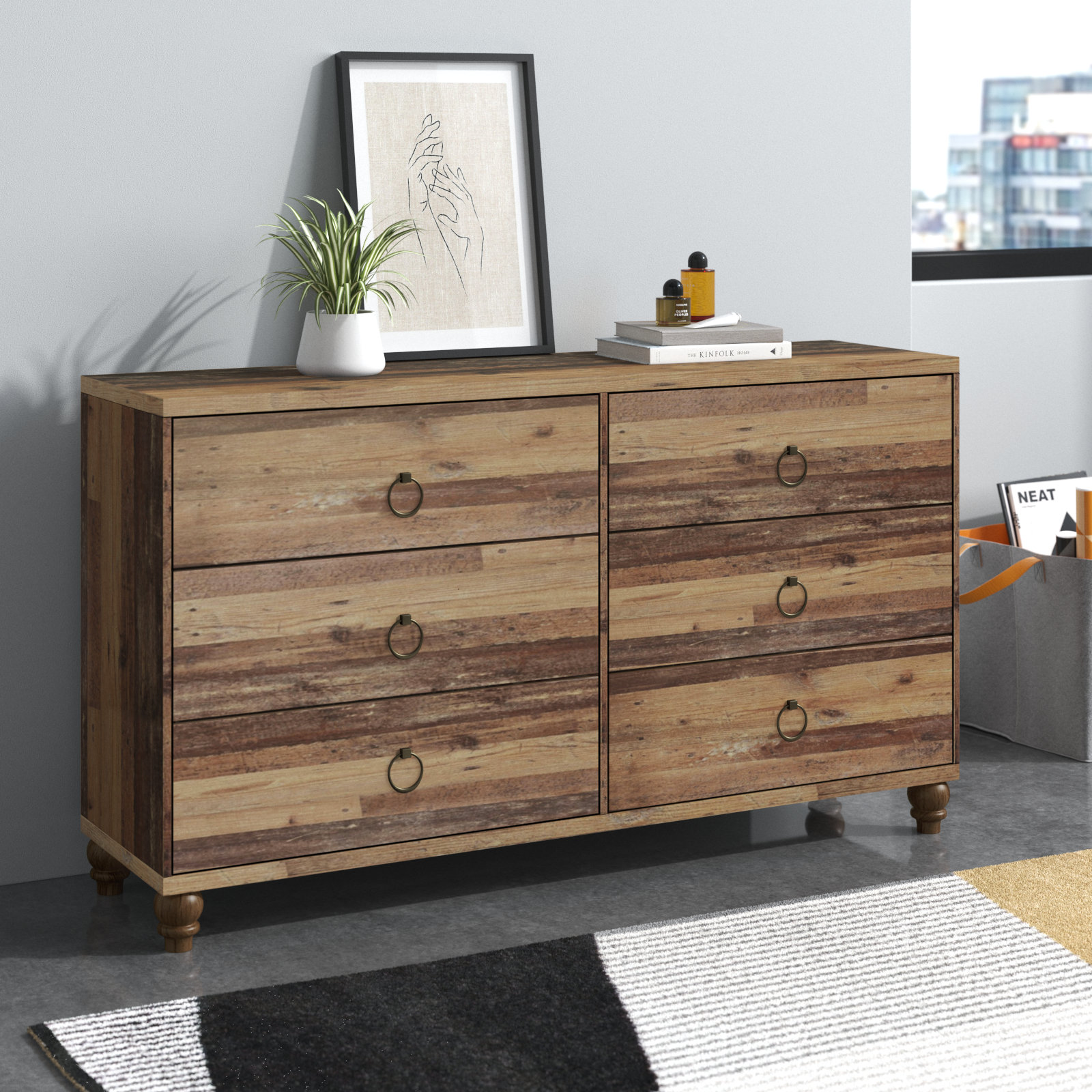 Ebern Designs Commode double 6 tiroirs avec grain de bois naturel ...