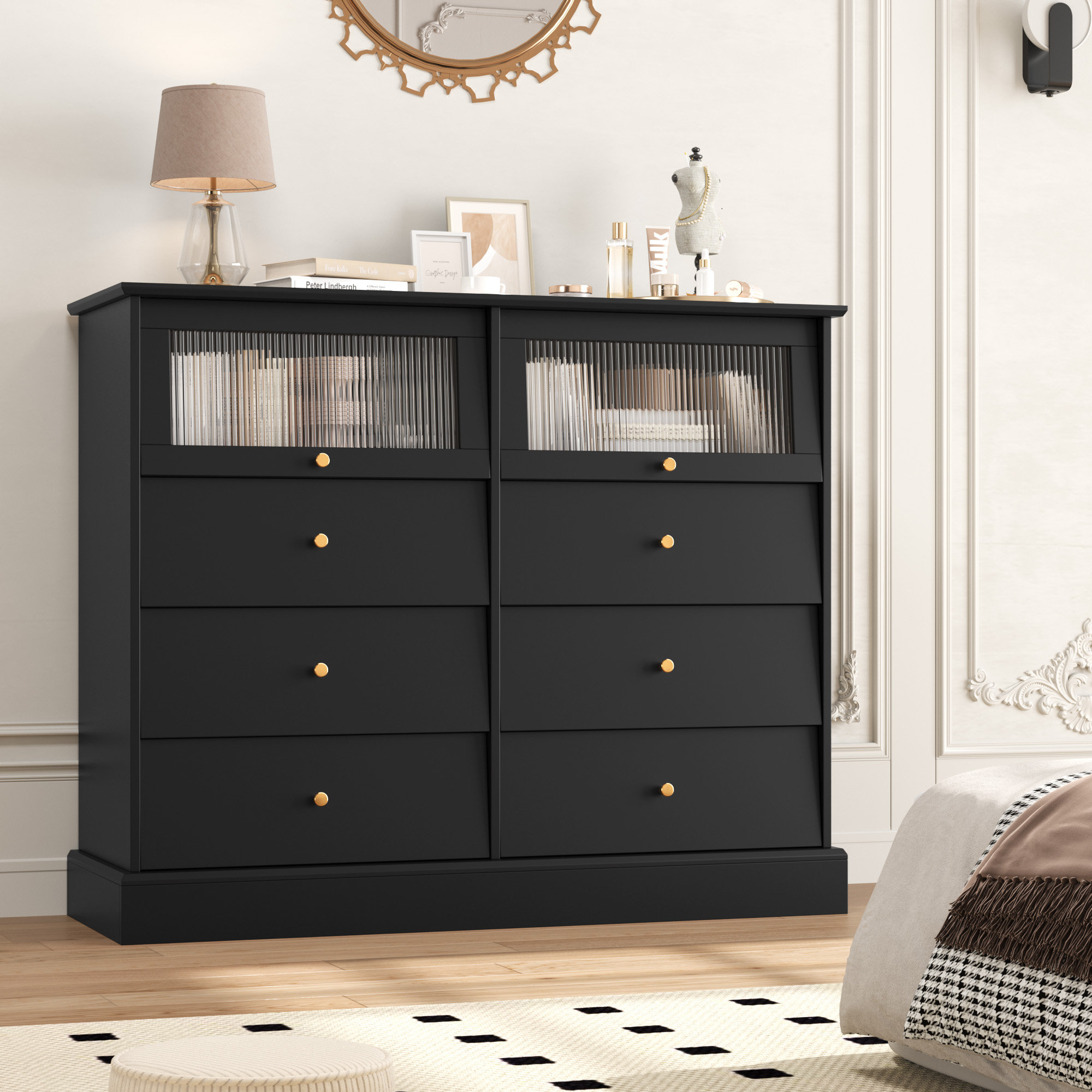 Ebern Designs Commode 8 tiroirs pour chambre à coucher, commode double ...