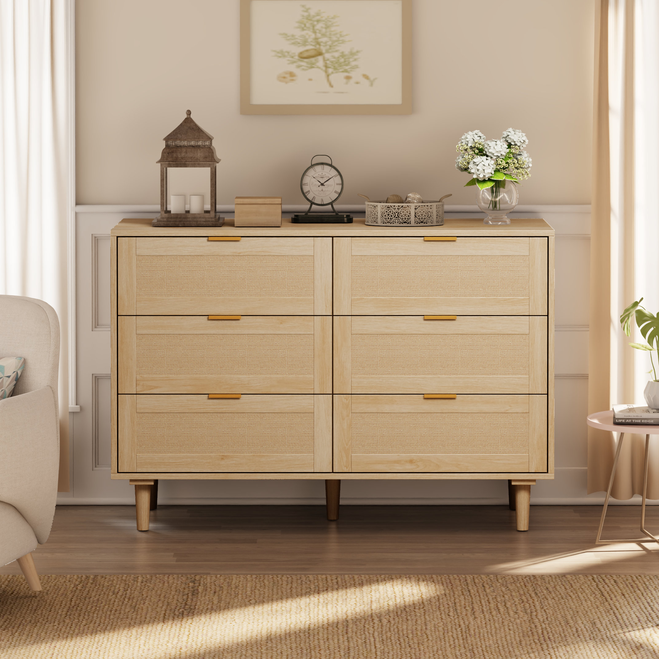 Gracie Oaks Commode double en rotin 6 tiroirs pour la chambre à coucher ...