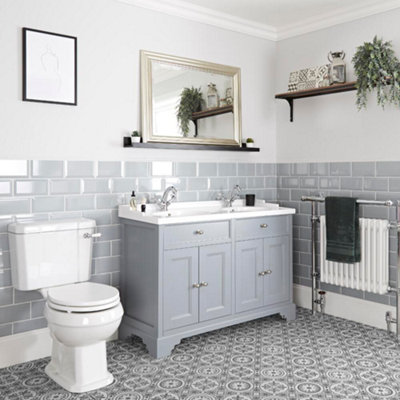 HomeStyleStore 1210mm Light Grey Bathroom Vanity Unit with Double Basin ...