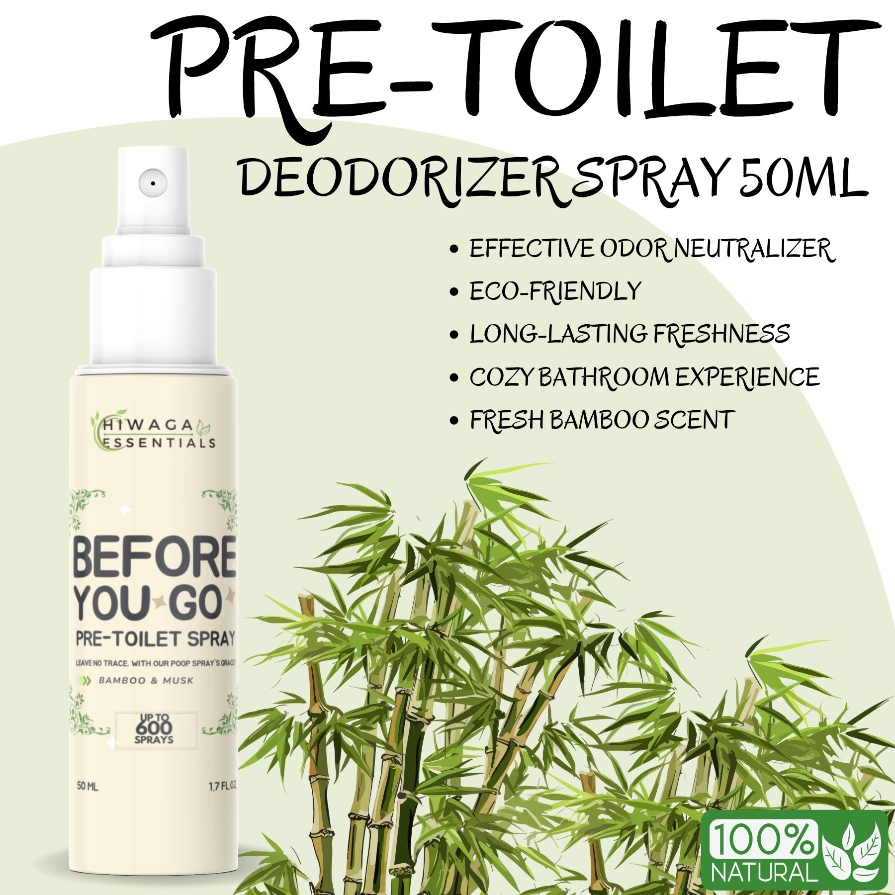 PRE-TOILET DEODORIZER SPRAY FRESH BAMBOO SCENT Bathroom Odor ...