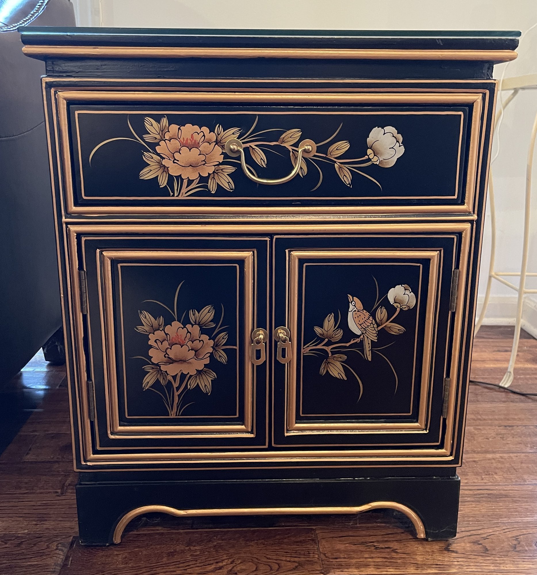 BLACK LACQUER HAND PAINTED FLORAL CHINOISERIE COMMODE #14550 ...