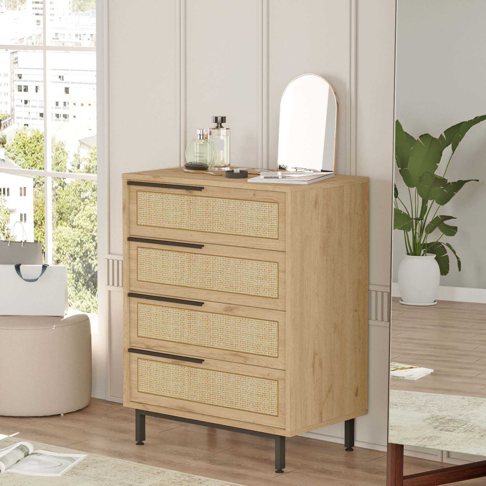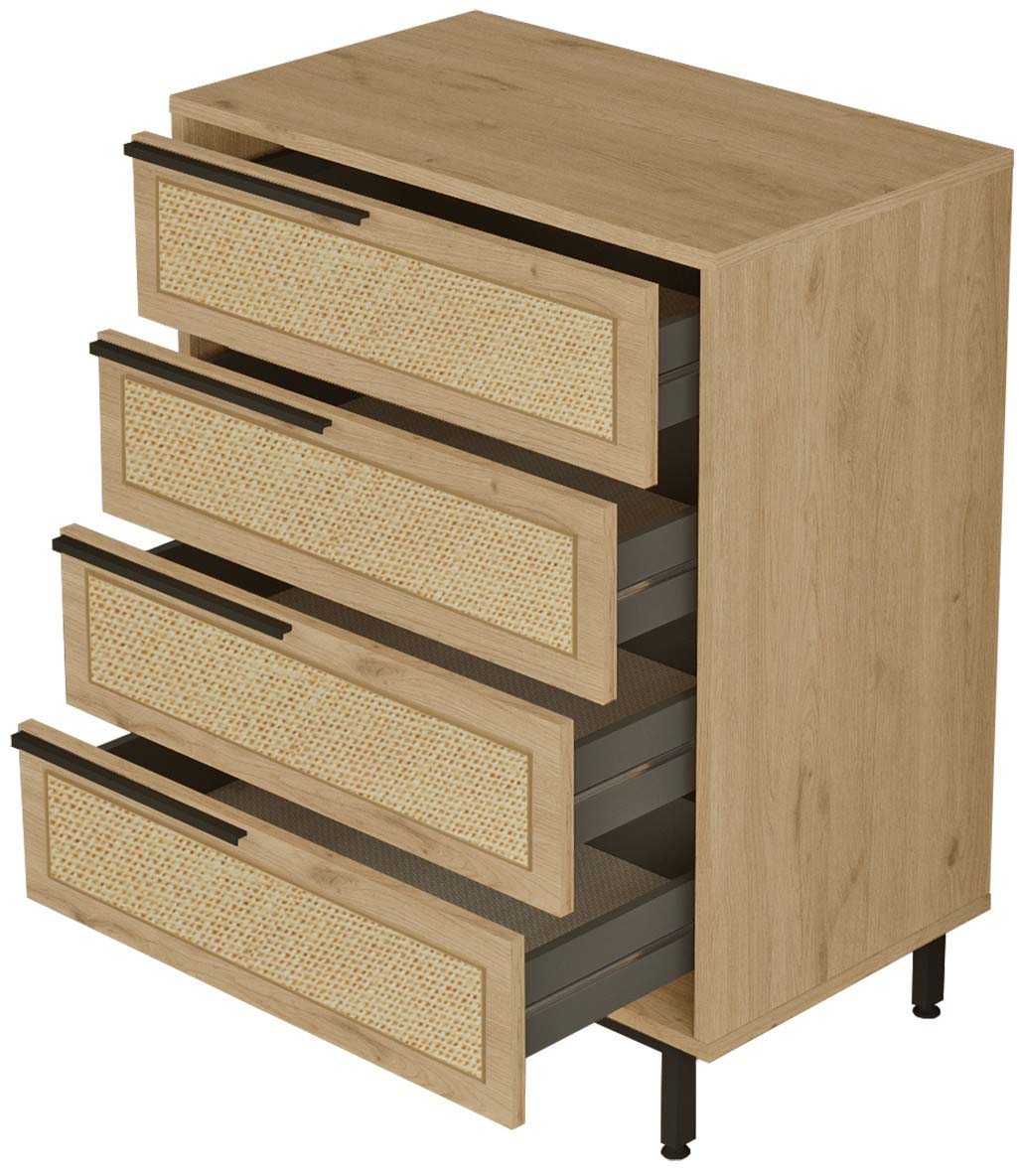 Commode 3 tiroirs et 3 niches coloris naturel et anthracite - LEANDRE