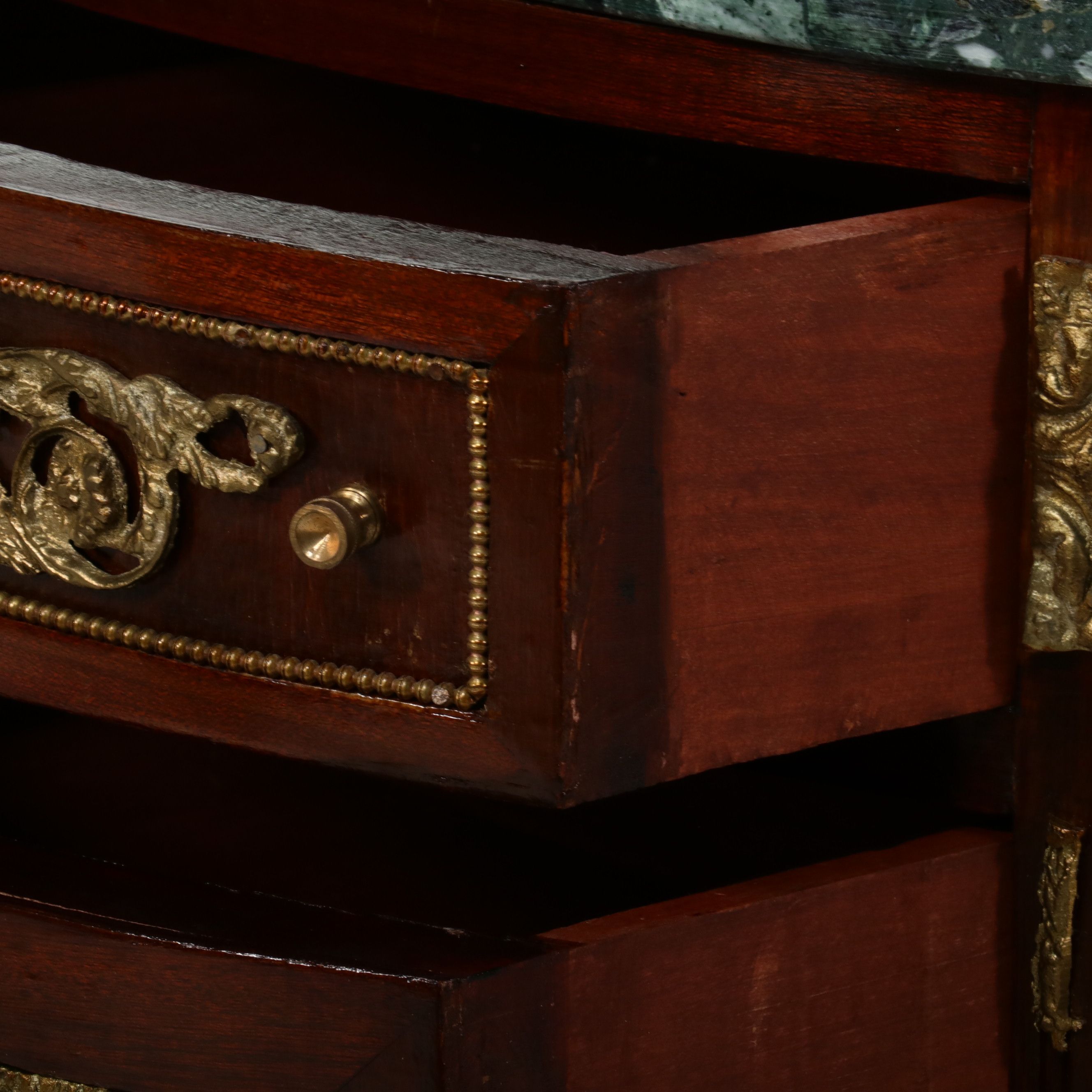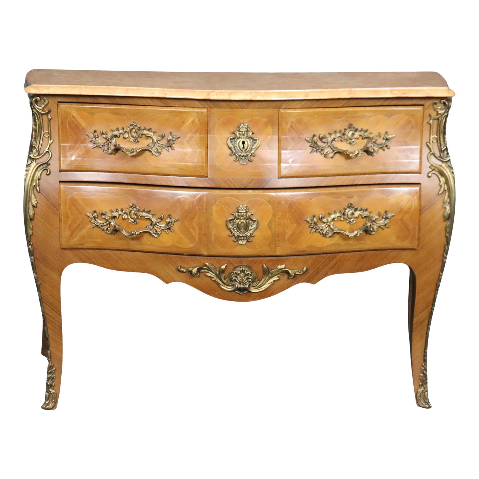 Pale Walnut French Louis XV bronze Mounted Marble Top 3 Drawer Commode ...