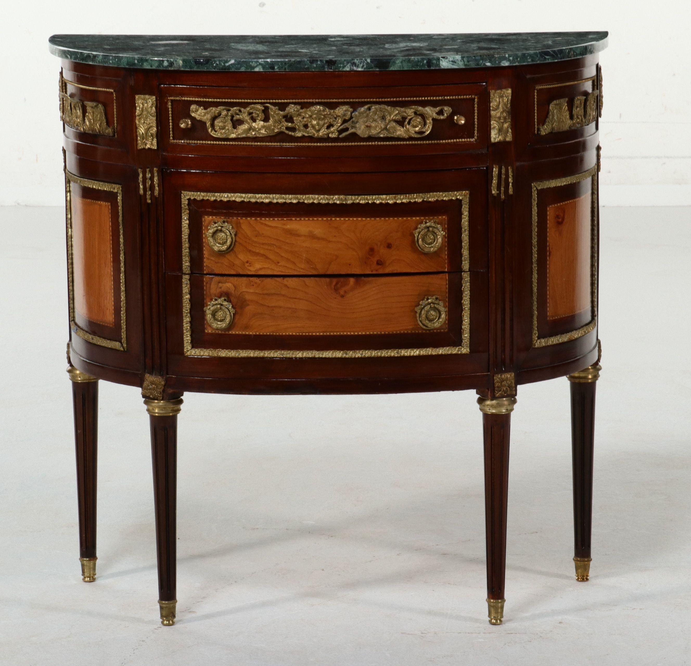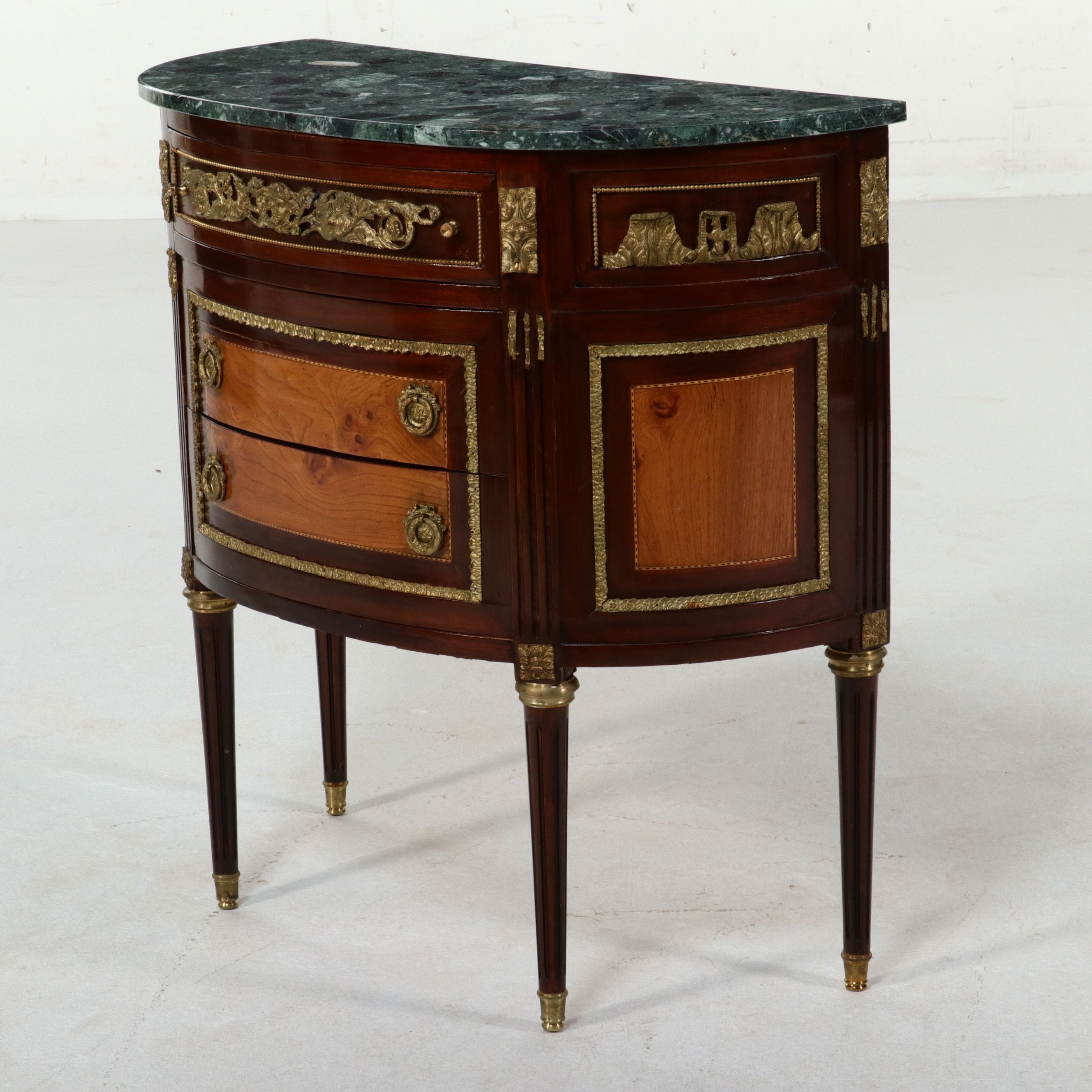Louis XVI Style Gilded Demilune Commode with Green Marble Top | EBTH