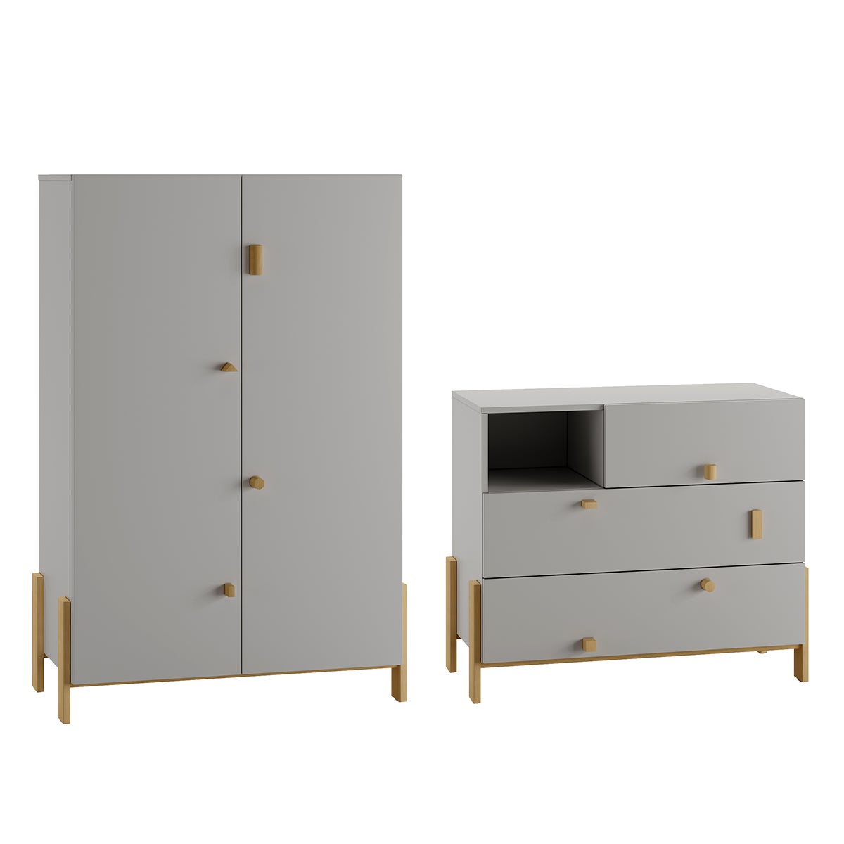 Commode 3 tiroirs et armoire 2 portes Cube Gris clair et Bois | Leroy ...