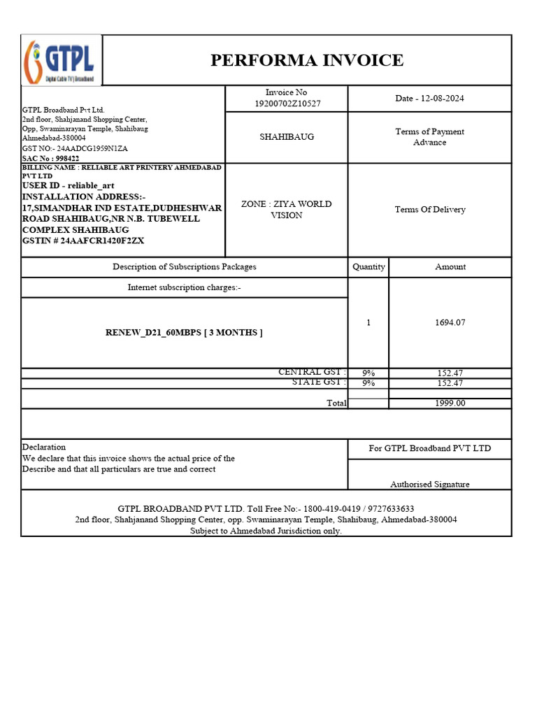 Performa Invoice - Reliable - Art | PDF