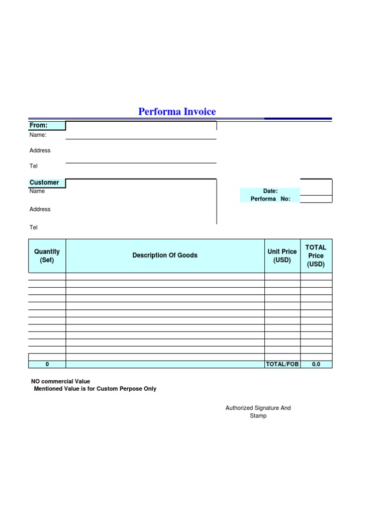 Performance Invoice Meaning | Download Proforma Invoice In Excel