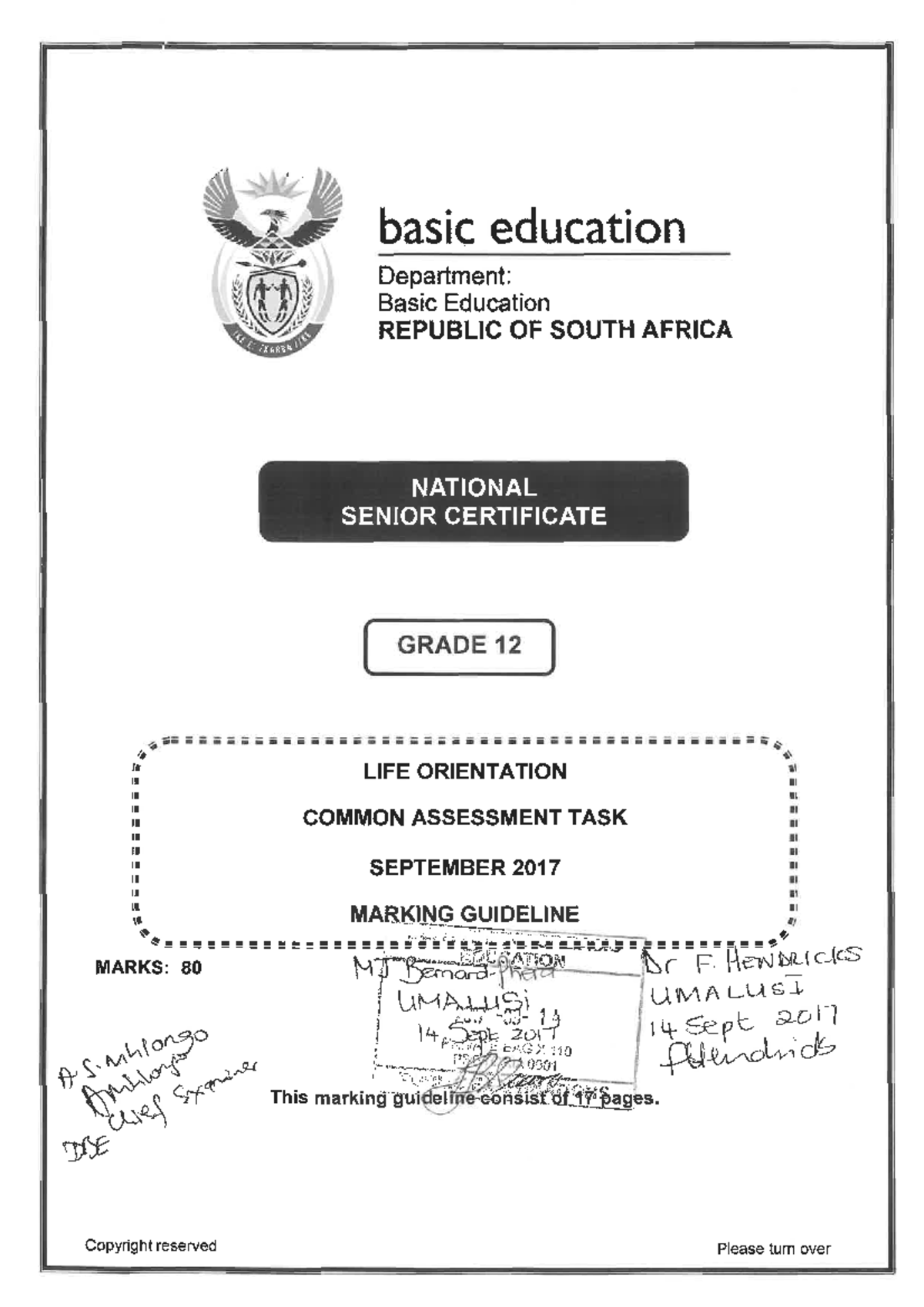 Life Orientation 2017 NSC Common Assessment Task Marking Guidelines ...