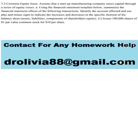7.2 Common Equity Issue. Assume that a start-up manufacturing company .pdf