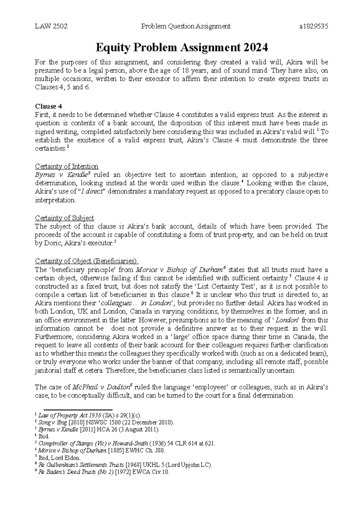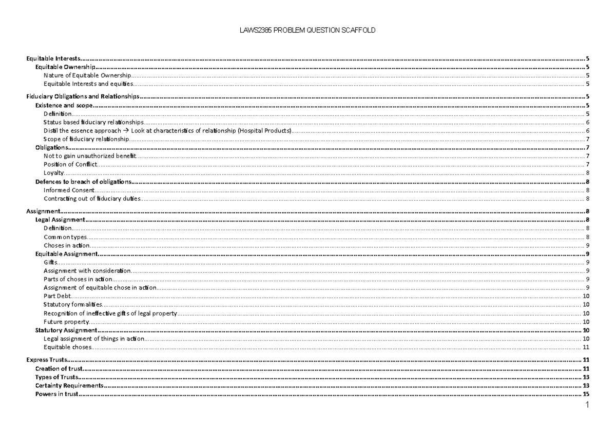 LAWS2015 & LAWS5015: Equity – problem question answer structure | StudyLast