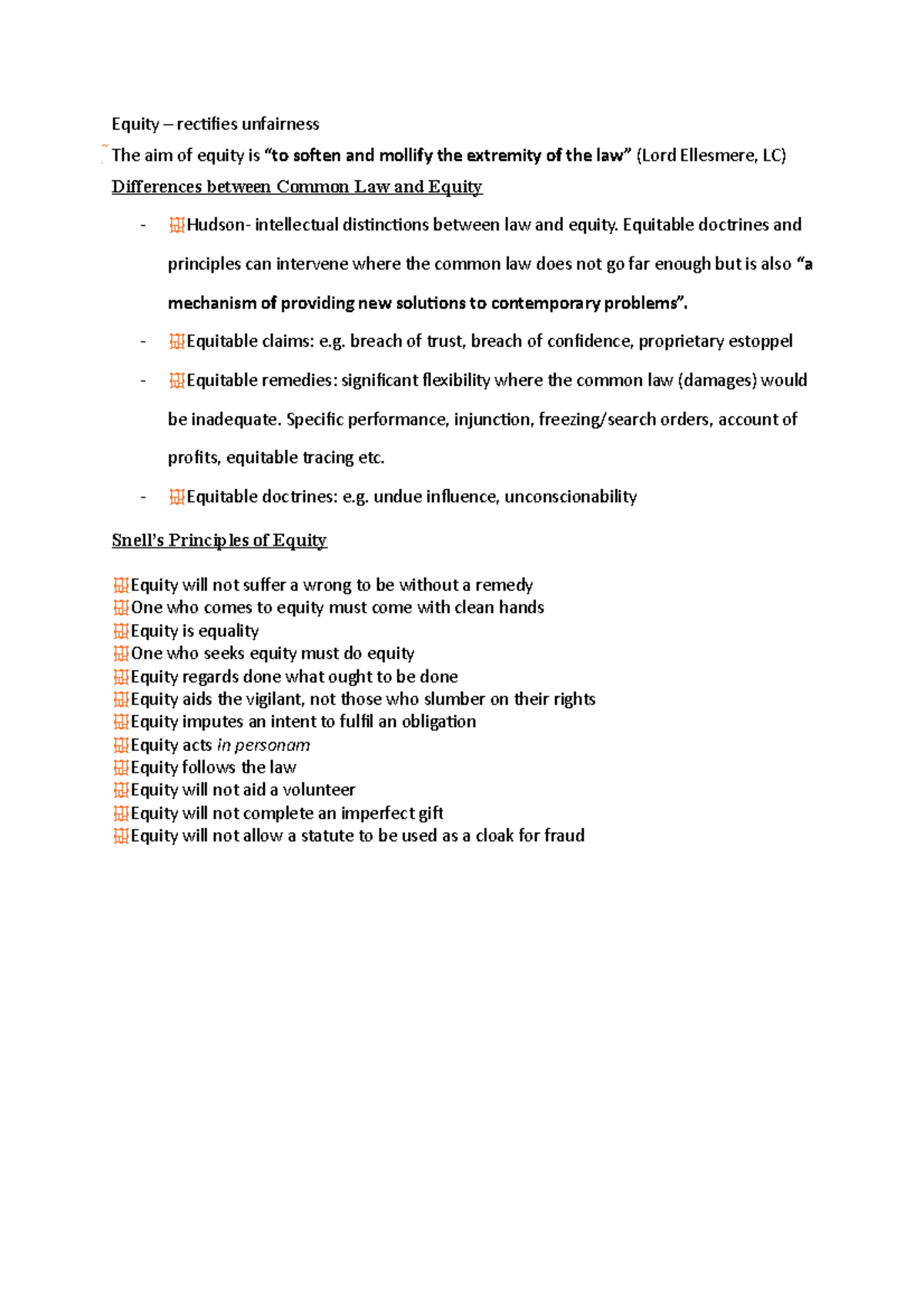 Equity And Trusts S1 L1 - Equity – rectifies unfairness The aim of ...