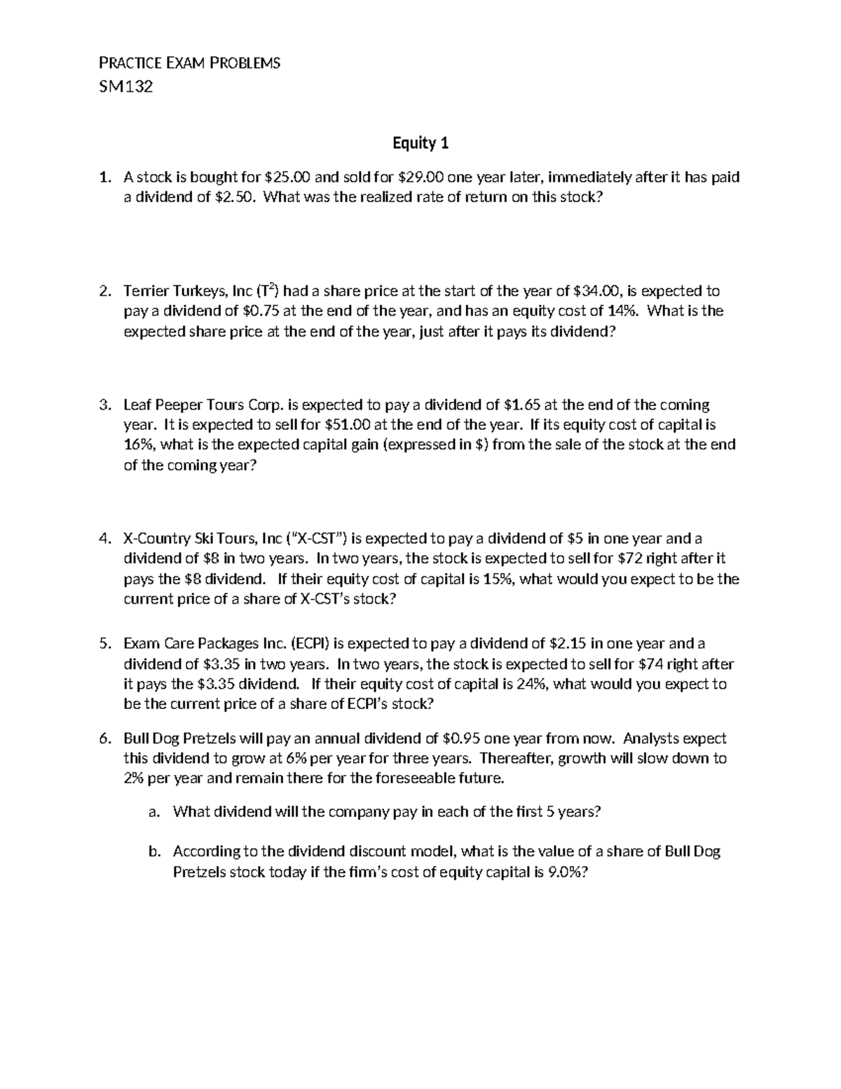 Practice Exam Problems 11 - Equity 1 - PRACTICE EXAM PROBLEMS SM ...