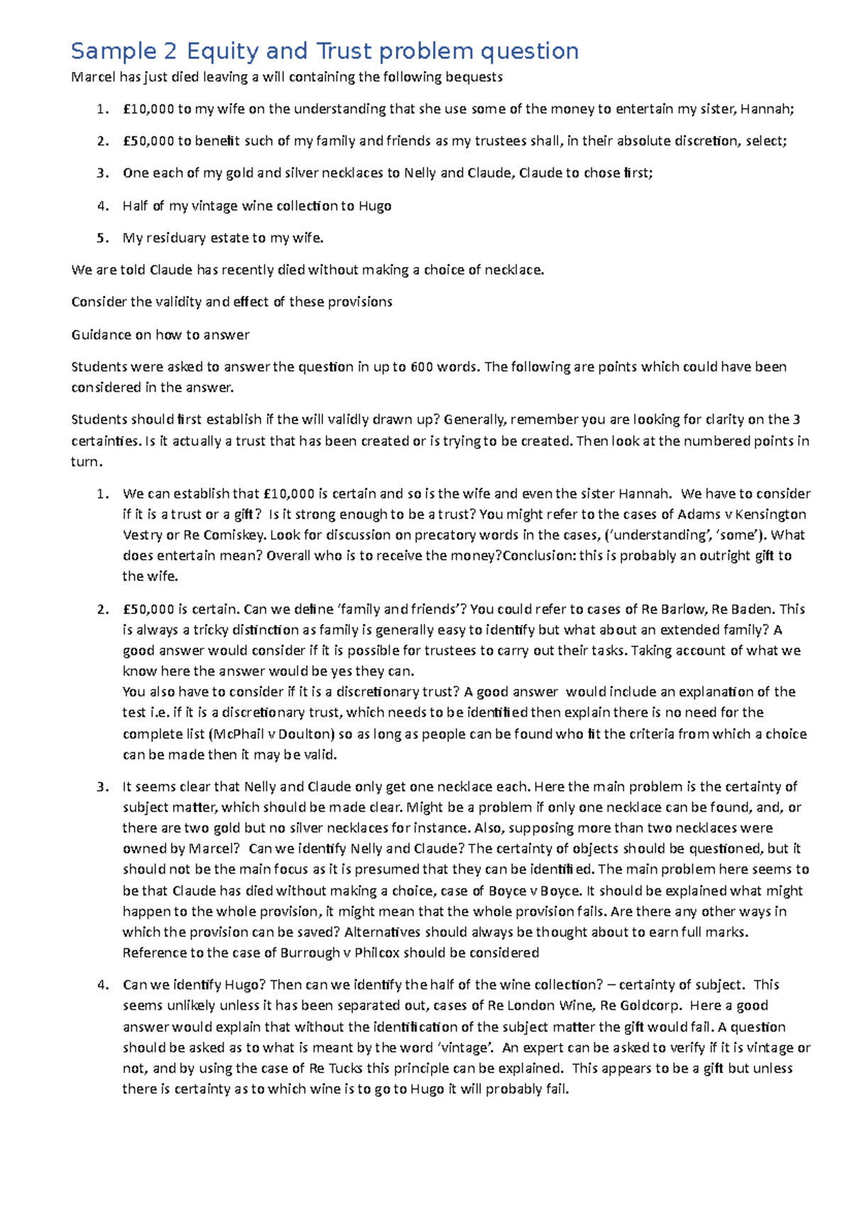 Answering Problem Questions IN Equity AND Trusts - ANSWERING PROBLEM ...