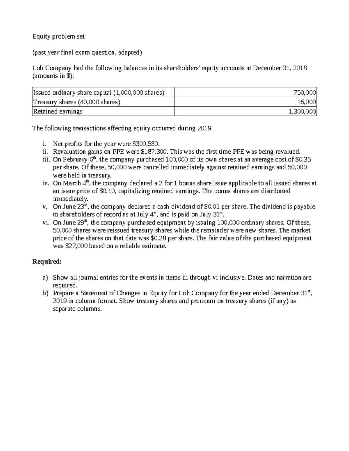 Equity problem set - Equity problem set (past year final exam question ...
