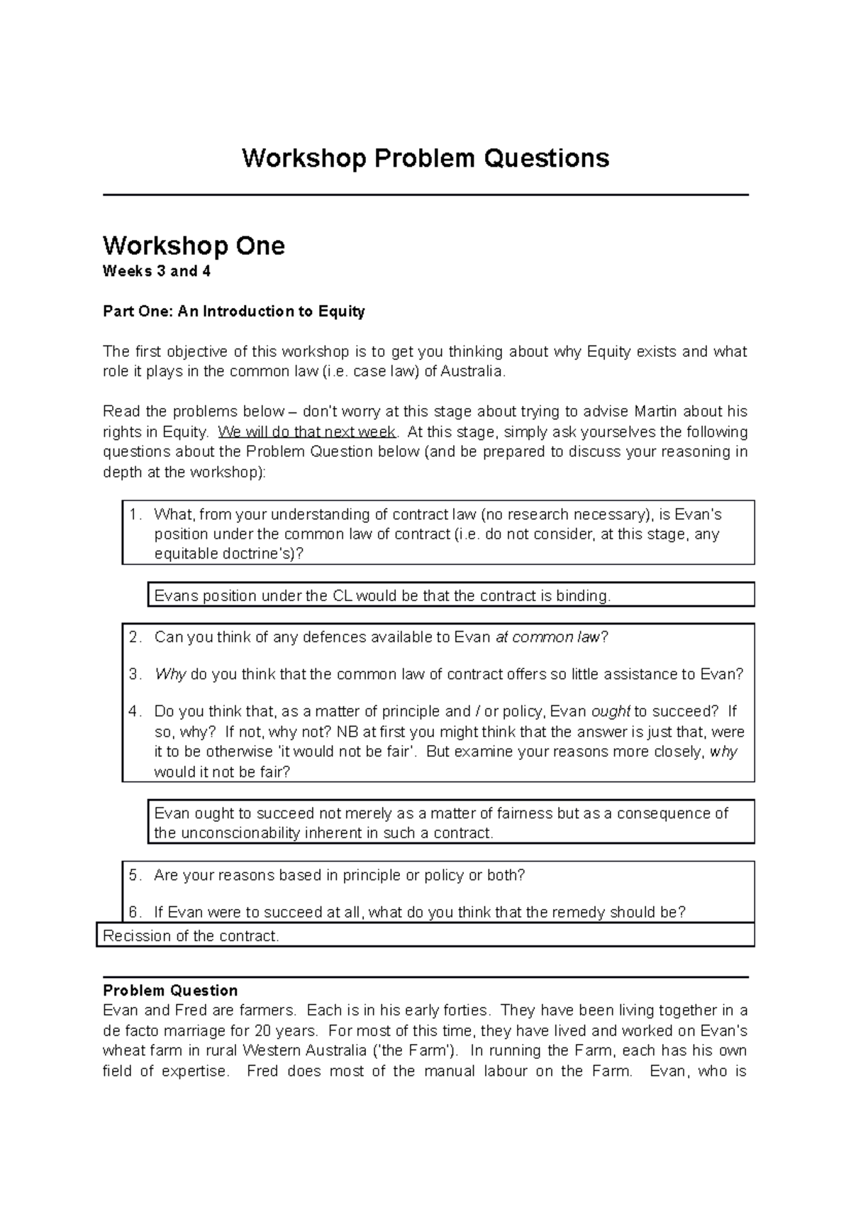 2019 Tutorial Problems Equity - Workshop Problem Questions Workshop One ...