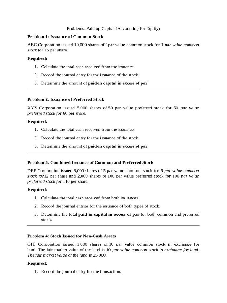 Equity Financing Practice Problems - Equity Financing EF Practice ...