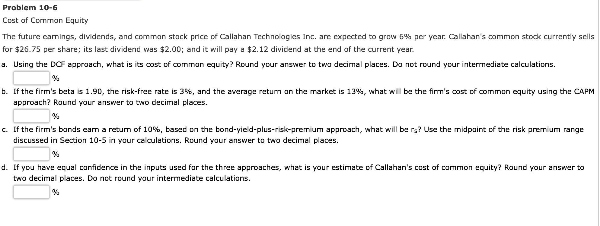 Solved Problem 10-6 Cost of Common Equity The future | Chegg.com