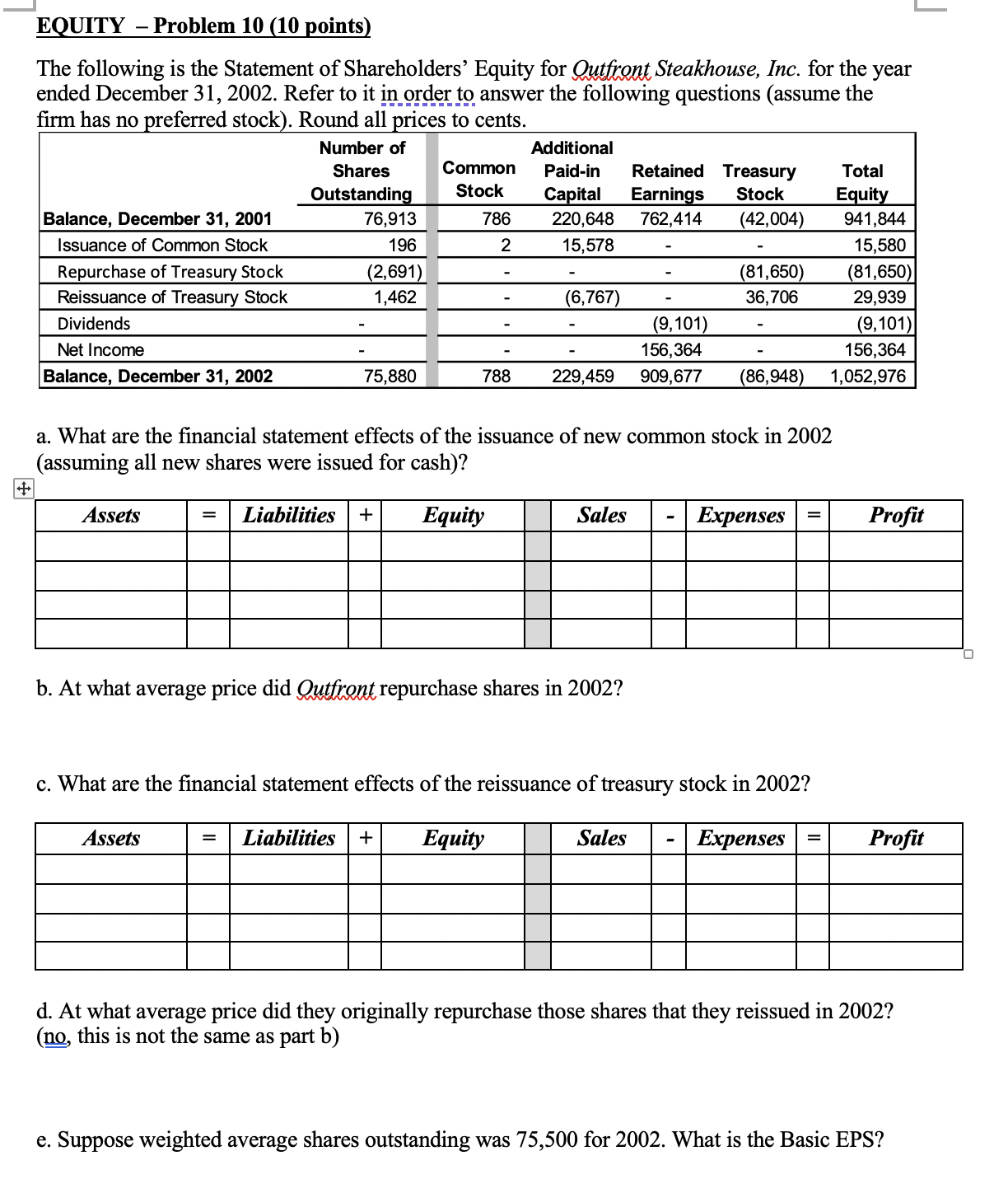 Solved EQUITY - Problem 10 (10 points) The following is the | Chegg.com