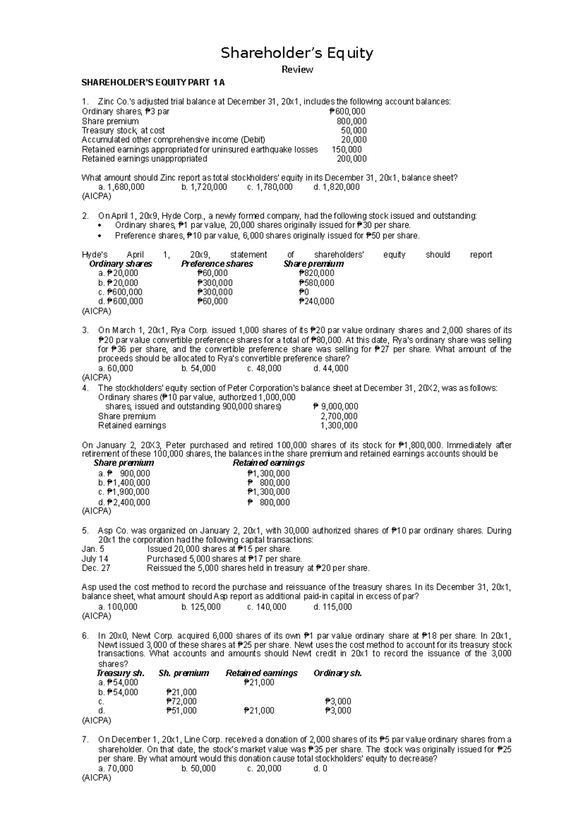 Shareholders-equity-problems-and-answers compress - SHAREHOLDERS ...