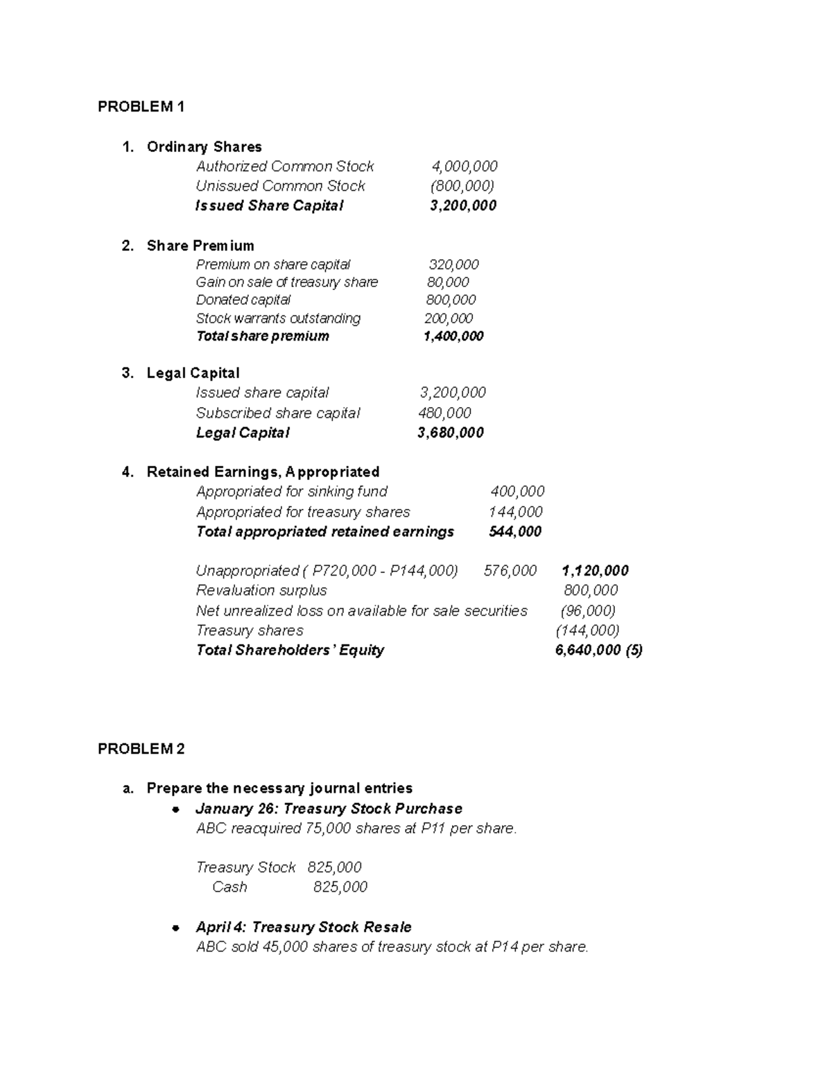 Accounting For Equity Problems | PDF | Treasury Stock | Stocks