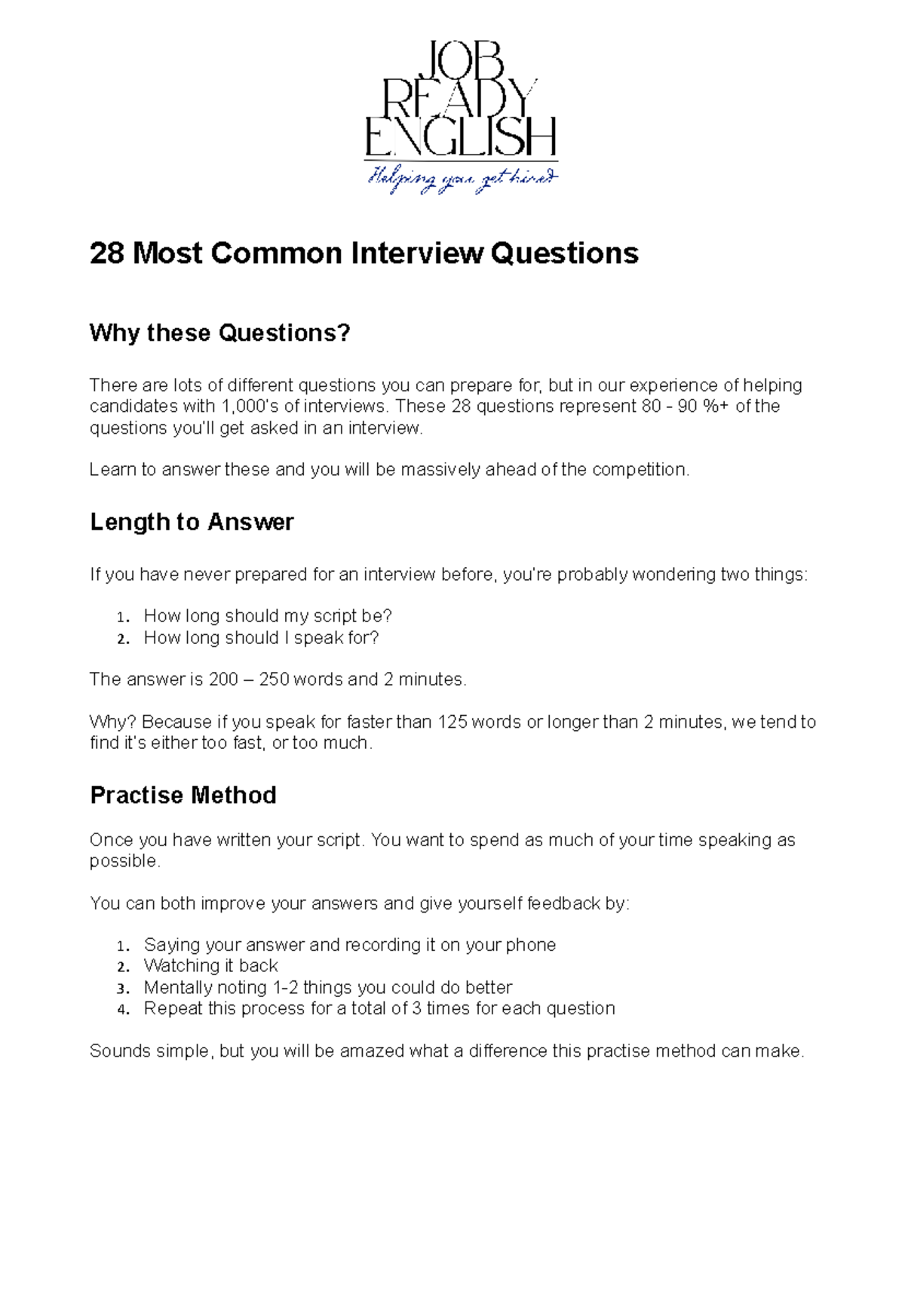 The 28 Most Common Interview Questions: Mastering Your Responses - Studocu