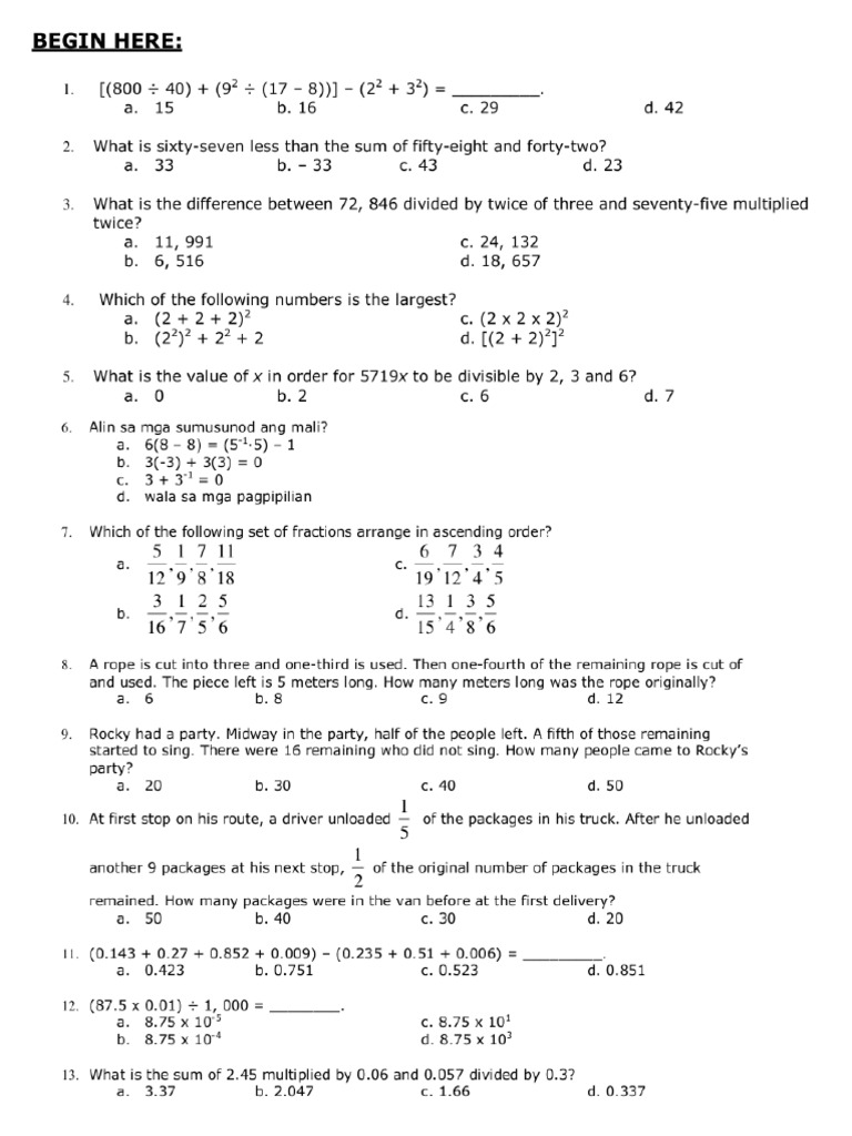 Basic Math Quiz Bee Question Bank (10 Items) - Studocu