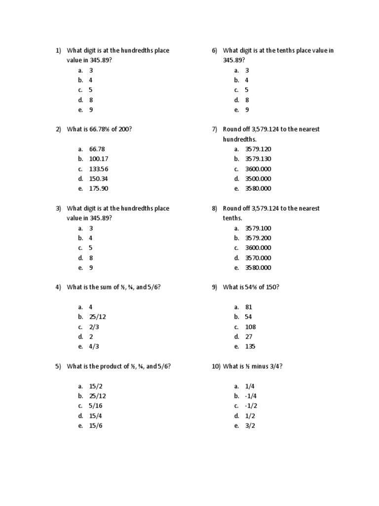 Basic Math Practice Questions | PDF