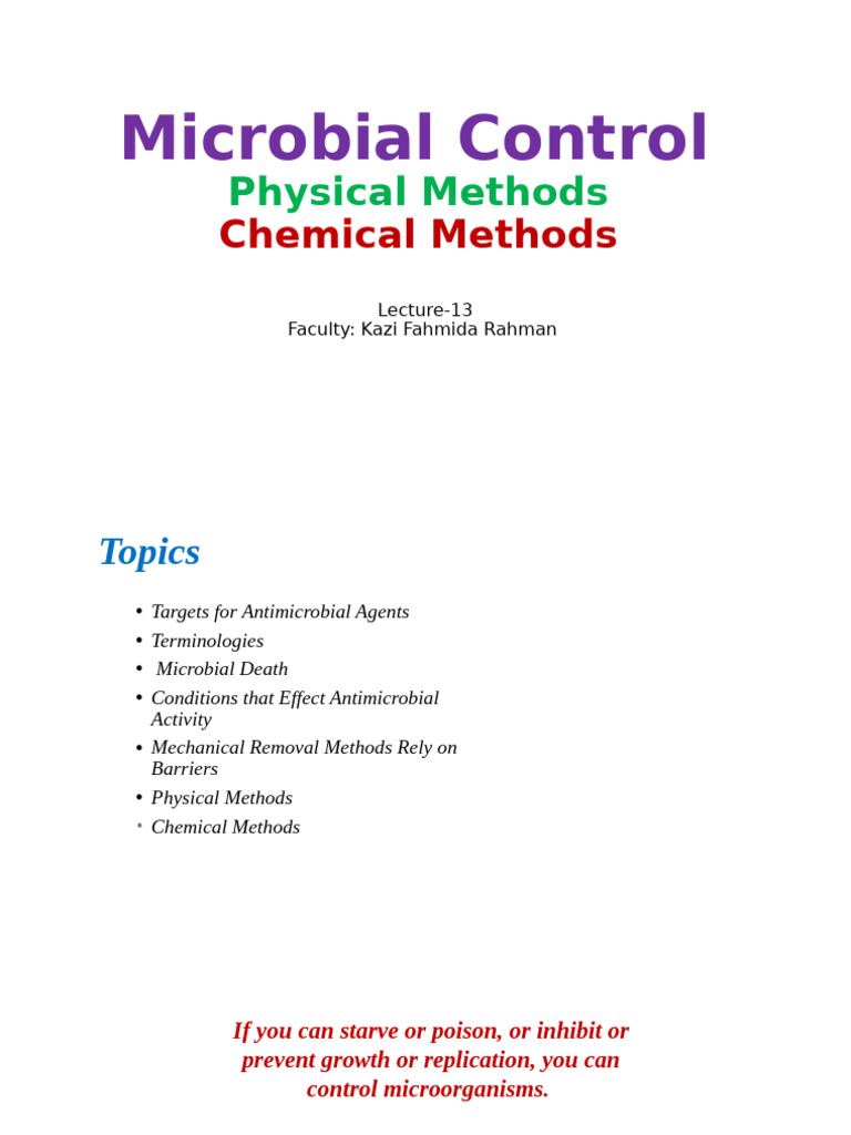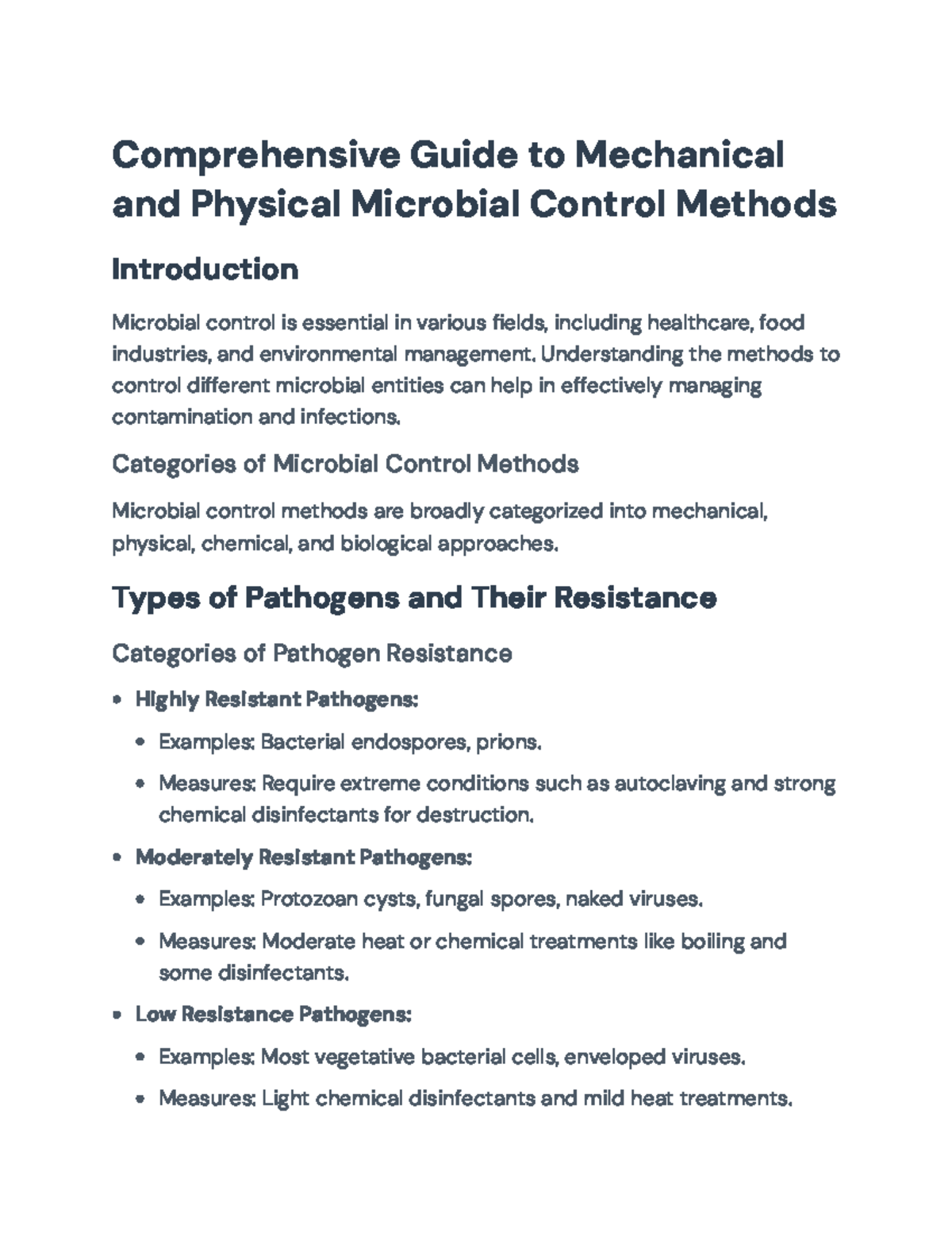 Microbial Control Methods: Physical & Chemical Approaches - Studocu
