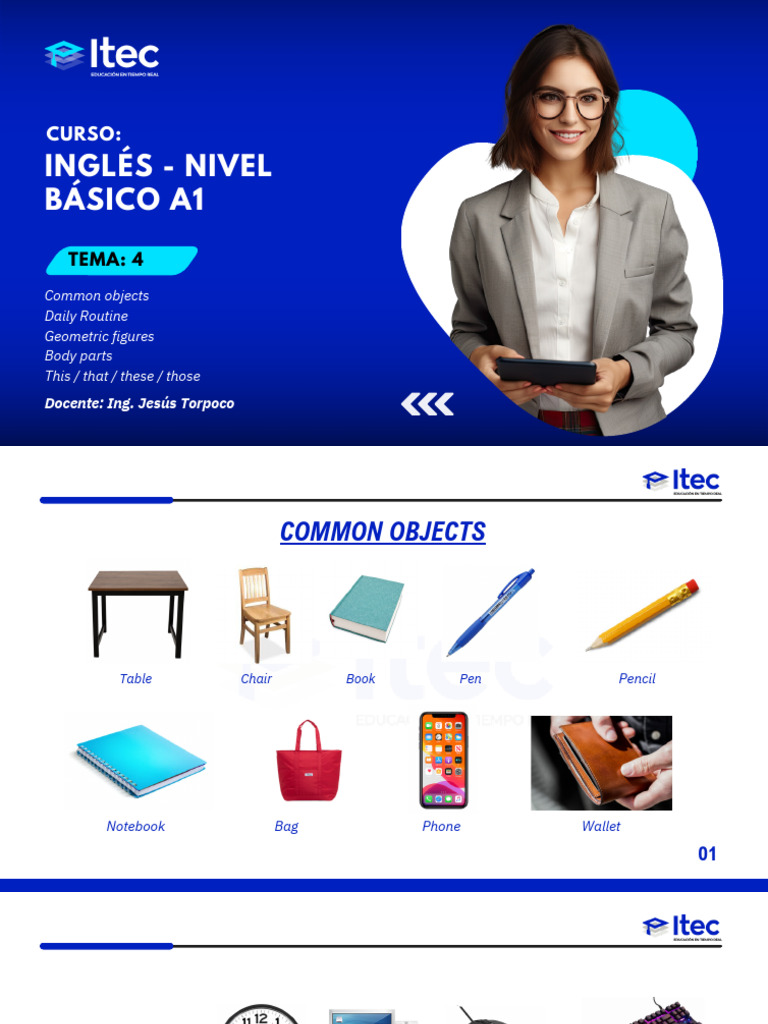 TEMA 4 - Common Objects Daily Routine Geometric Figures Body Parts This ...